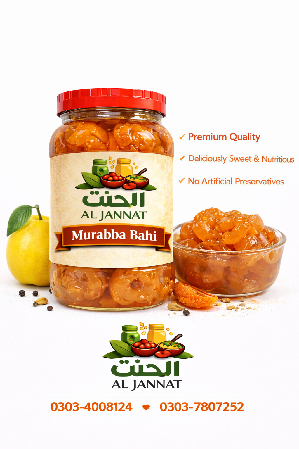 Made from fresh Bahi (quince) pieces preserved in sweet syrup, Bahi Murabba delivers a rich, tangy-sweet flavor and traditional goodness.