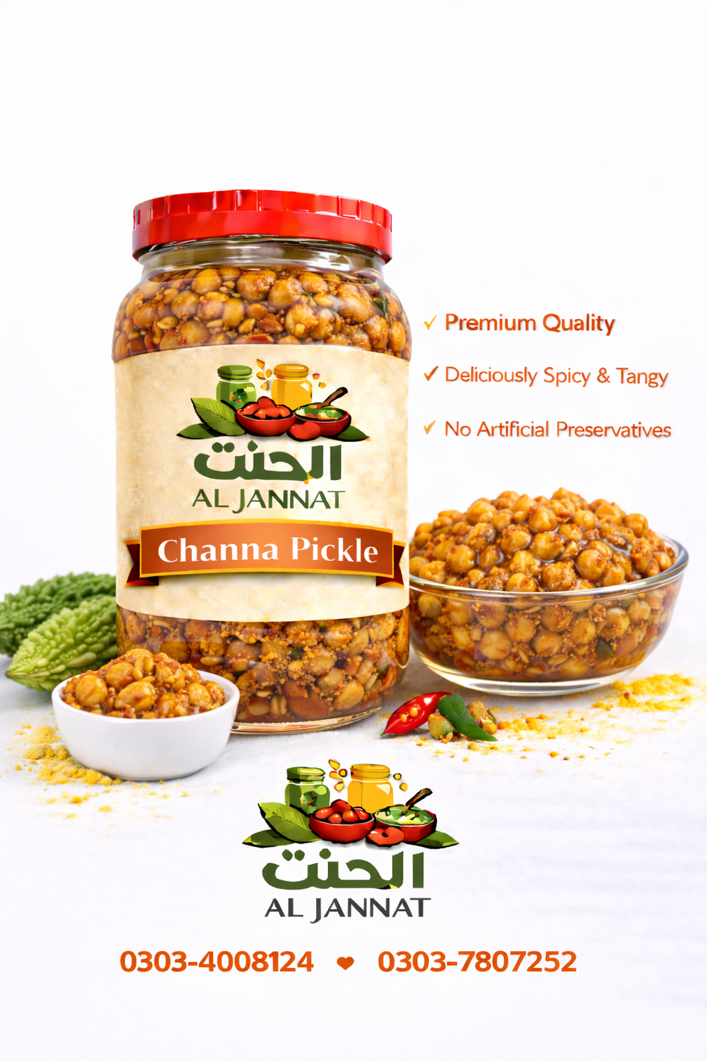A tangy and spicy pickle made from boiled channa (chickpeas) blended with traditional spices and oil. Perfect as a flavorful side to rice, roti, or snacks.